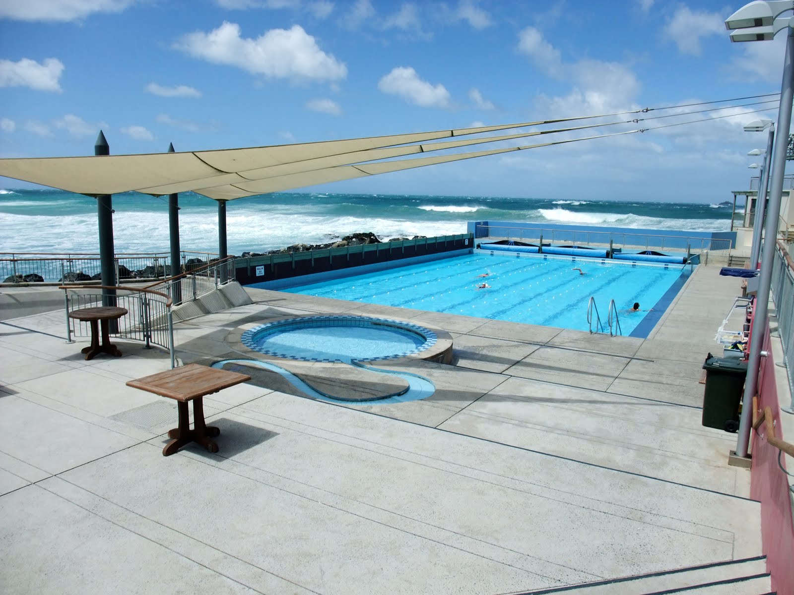 The water was a sizzling 28 degrees, Celcius, which was 8 degrees warmer than the air. This should have registered to me before I payed my NZ$5.50 for admission, but it didn't so I was freezing most of the time. That small pool looked like a hot tub from my view, but was actually a freezing tub that was about two feet deep. Maybe it was a kiddy pool? We all found ourselves using the free goggles they gave us and swimming laps to stay warm.